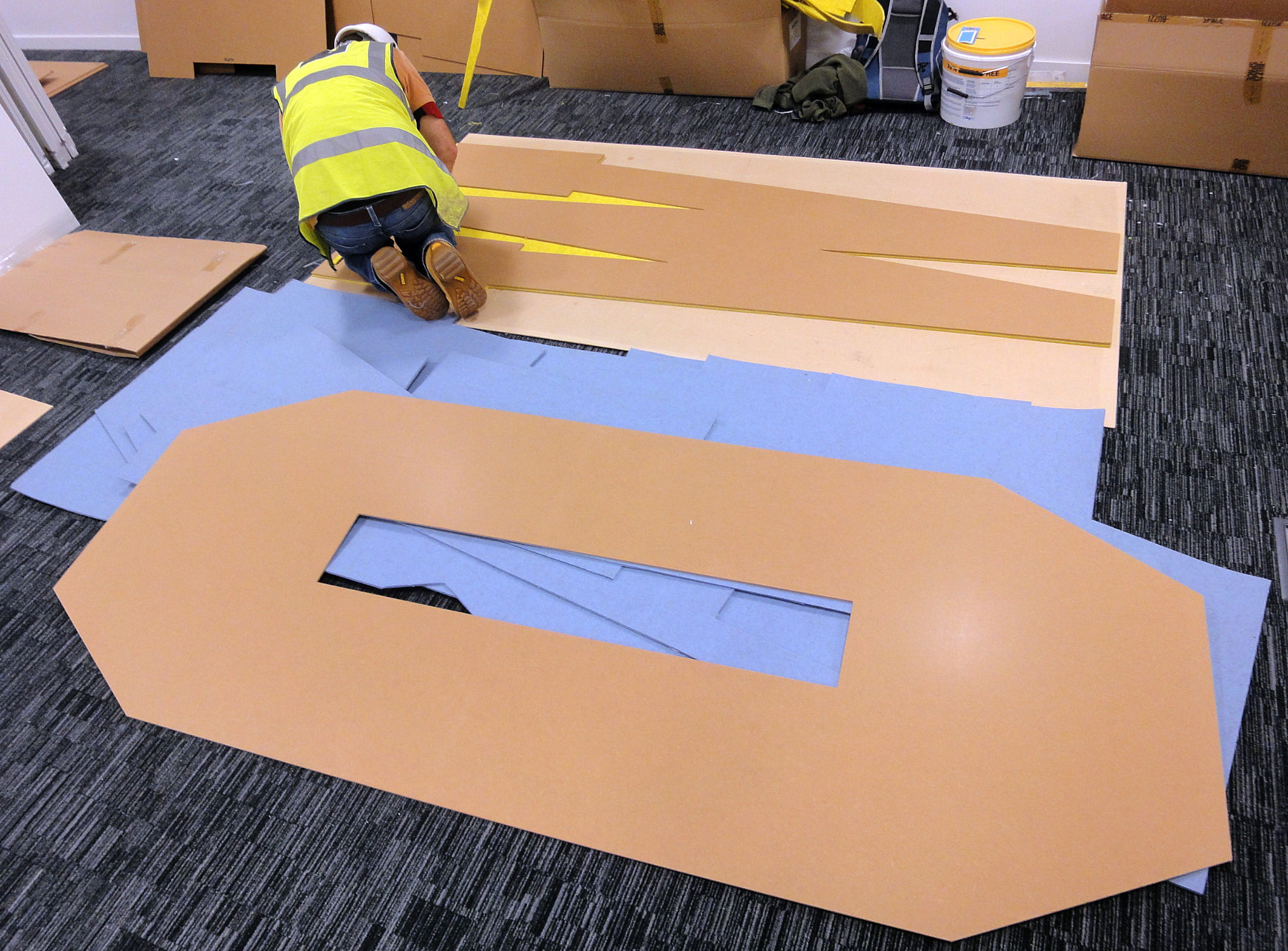 Yellow - marking out on the walls. |
