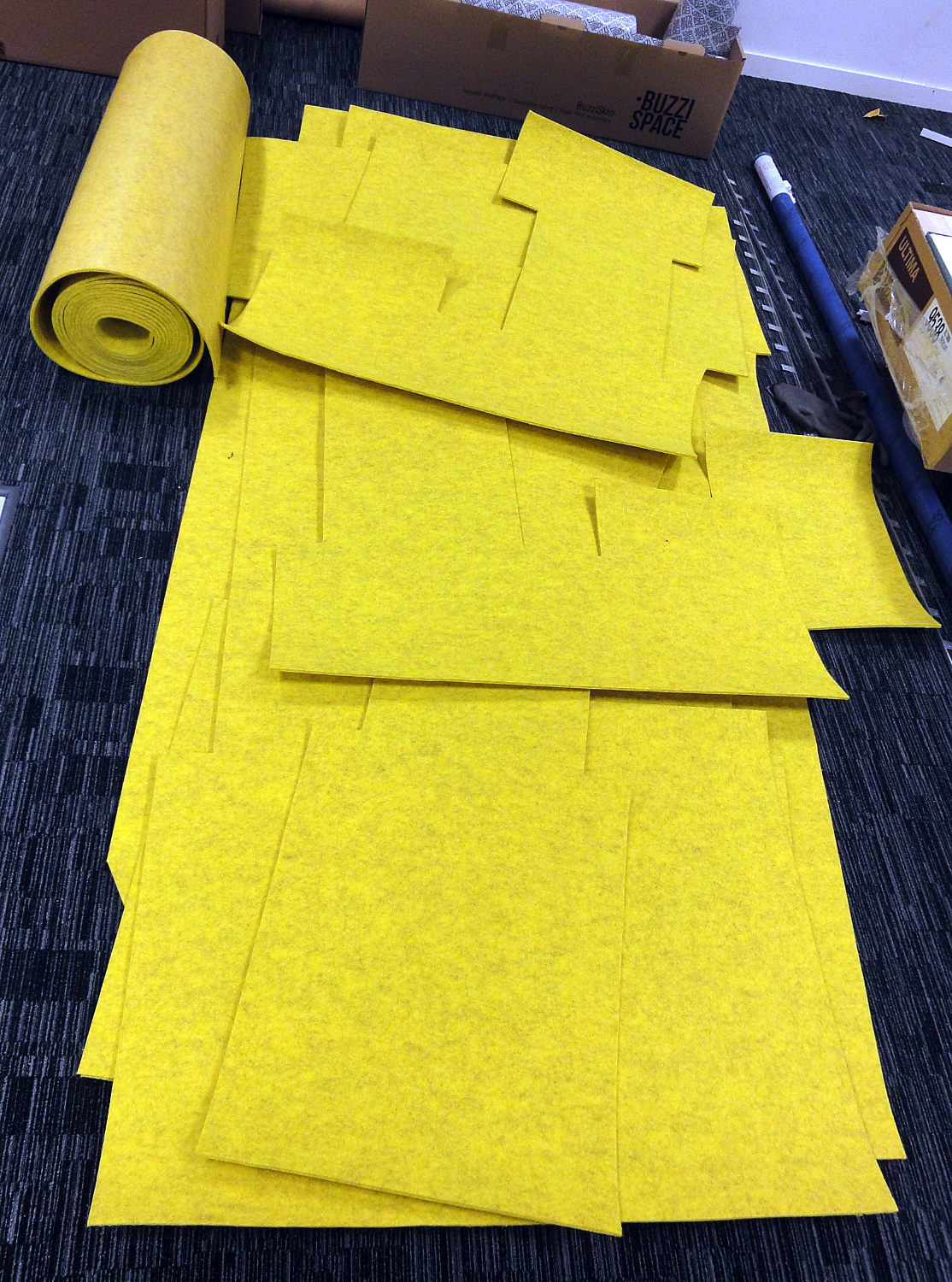 The yellow pieces, cut from a polyester felt roll. |